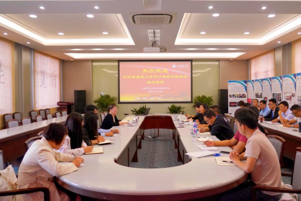 5月21日,上海师范大学继续教育学院院领导组织全体人员在学院会议室召开考察交流座谈会,会议由上海师范大学继续教育学院陈宇飞副院长主持。座谈会上,永利官网继续教育学院唐瑛院长介绍了“云南省基层人才对口培养计划项目”相关情况及8858cc永利唯一官方网的培养模式及特色;上海市特级校长、延安中学党委书记马越就上海市中学教育及相关政策措施做了解读、对学校常规管理提出了个人见解。学员们十分珍惜宝贵的学习机会,纷纷踊跃发言请教,围绕如何提高学校治理、教学管理能力和个人专业发展等方面与与各专家领导深入探讨交流。