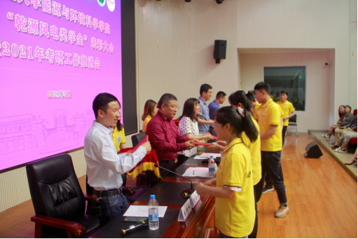 5月28日下午,能环学院举行2021年“乾源风电奖学金”表彰会暨2021年考研工作推进会。会议邀请乾源风电科技有限公司总经理庄严先生出席,学院党委书记刘莹老师、院长徐锐老师、党委副书记范荣康老师、学院副院长陈玉保老师等学院班子成员、辅导员、班主任、教师代表出席了大会,获奖学生、2018级全体本科生、其他各年级学生代表参会。会议由党委副书记范荣康老师主持。