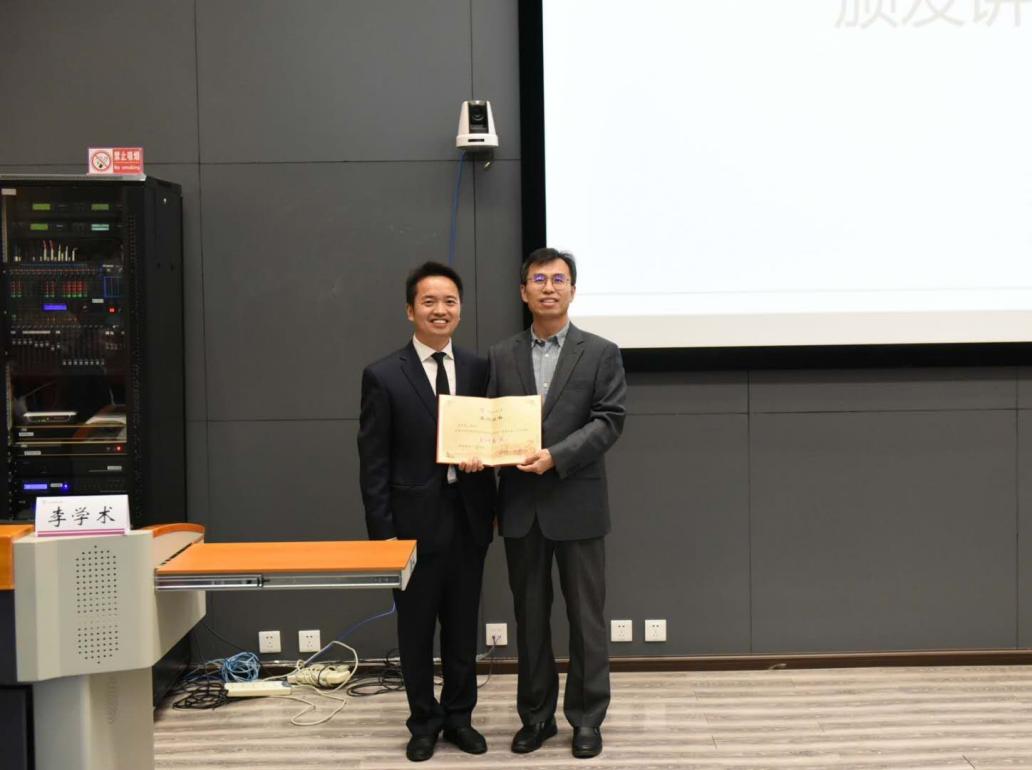 明文钦老师首先向李学术教授颁发了讲座嘉宾证书。之后,李教授分享自己及所带领创业团队的成长经历和经验。在谈到如何创业时,他指出创业的关键就是找到社会中潜在的需求,并提供解决这些需求的产品/服务。他指出创业对性格和能力有很好的锻炼作用,鼓励同学们积极尝试,同时强调严格组建好创业团队的重要性。李教授还分享了许多大学校园创业项目,如云印平台——飞印、“云里故乡”鲜花饮、山地农业灌溉系统等,给同学们提供了很好的交流及借鉴作用。