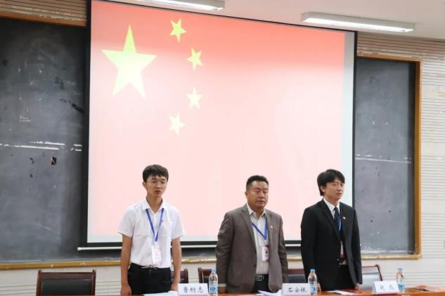 上午9点,大会第一次全体会议第一阶段在庄严的国歌声中开始。校团委副书记赵彪、文学院党委副书记石安银出席开幕式,兄弟学院(学部)团委代表及全体代表到场参会,会议由文学院团委书记周昱辰老师主持。开幕式上,工作人员宣读了外国语学院、地理学部、信息学院等五个学院(部)团委发来的贺词,赵彪老师、石安银老师致辞。