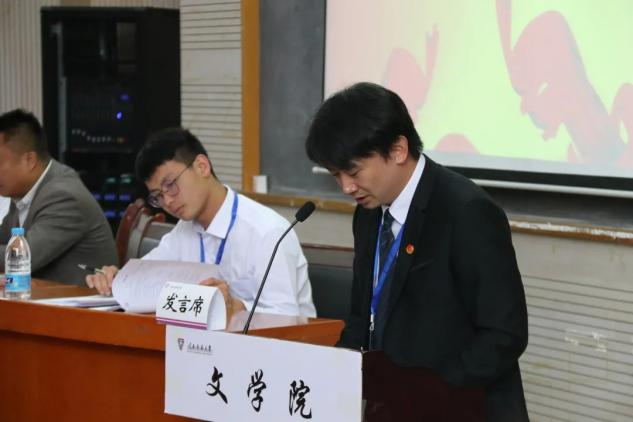 文学院石安银副书记对大会召开表示祝贺,总结了近五年来文学院在党委领导下、全体师生的共同努力下取得的优秀成绩,并对文学院青年学子提出了三点希望和要求:一是坚定理想信念,让青春焕发奋斗光彩;二是努力增长才干,让青春不断与时俱进;三是以德立心修身,让青春勤学善思明辨。希望文学院青年要肩负时代责任,高扬理想信念的风帆,弘扬西南联大的传统,静下心来刻苦学习,努力练好人生和事业的基本功,不断开创文学院共青团工作的新局面,为加快学院建设贡献青春力量。
