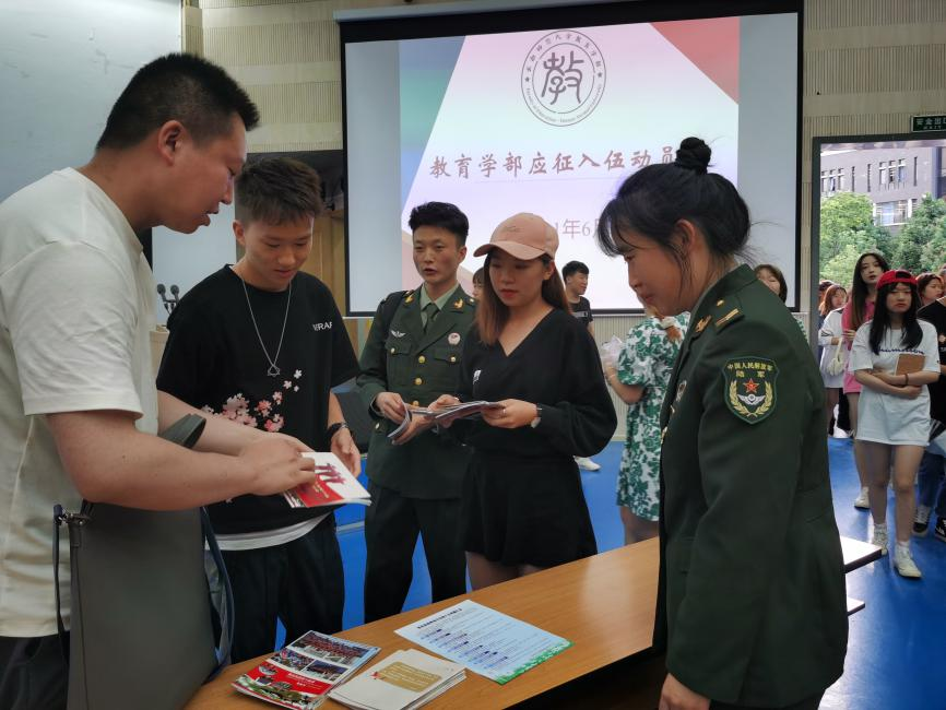 会后,不少同学就应征入伍的相关细节和政策与宣讲团成员进行了深入探讨和交流。2021年4月,教育学部2017级学生李鎏已光荣应征入伍,此次动员会是教育学部深入贯彻学校征兵工作会议精神,做好大学生征兵入伍工作的又一举措。今后,教育学部还将通过学部公众号广泛宣传征兵政策,对有意向的同学提供一对一指导帮助等,帮助学生圆梦军营。