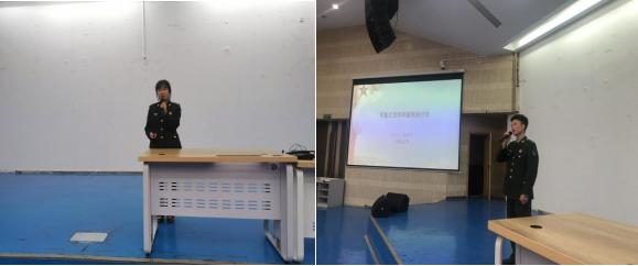 国防教育及应征入伍宣讲团成员、2017级测绘工程专业的铁发子同学分享自己的军旅生活及收获。他谈到,两年的部队生活,让自己受益匪浅:态度的转变、意志品质的磨练、收获难忘的兄弟情、爱国情怀的提升,为他如今顺利就业打下了良好基础。国防教育及应征入伍宣讲团成员、2017级数学学院学生张睿贤分享自己的军旅生活,她以自己在武警部队执行任务的亲身经历为切入点,生动讲述了自己在部队的所得所获,指出奋斗的青春最美丽,鼓励学弟学妹投身军营,为祖国建设贡献力量。