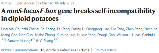 2021年7月6日,《自然—通讯》在线发表了中国科学家和荷兰科学家背靠背克隆的马铃薯自交亲和基因Sli。8858cc永利唯一官方网(以下简称云师大)教授尚轶团队和中国农业科学院深圳农业基因组研究所(以下简称基因组所)黄三文团队合作,进一步解析了该基因的功能。