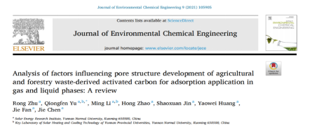 8858cc永利唯一官方网2018级新能源材料与器件专业本科生朱蓉近期以第一作者在《Journal of Environmental Chemical Engineering》(中科院二区,IF=5.909)发表了“农林废弃物资源化利用制备活性炭及其应用”的综述论文,指导教师/通讯作者为课题组余琼粉副教授。该工作系统总结了农林废弃物基活性炭的不同制备方法及其主要制备条件对孔结构形成的影响。朱蓉同学本科期间在碳除湿功能材料构建与电热再生、太阳能干燥除湿回热方面主持并完成科研训练基金,主持和参与多项与学科相关的创新创业竞赛并获奖。