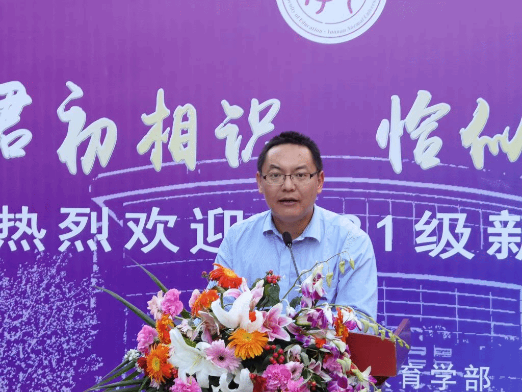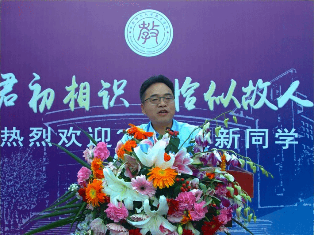 教育学部李长吉主任致辞,李长吉主任介绍了学部基本情况,并向全体新生提出三点希望:一是刚毅坚卓,进德修业。希望同学们树立远大志向,勤奋学习,对道德学问孜孜以求。二是襟怀天下,修齐治平。要视天下为己任,将人生理想定位为“为天地立心,为生民立命,为往圣继绝学,为万世开太平”。三是术道兼修,明体达用。希望同学们明经通史、通习事务,既能修己,又能安人,成为德才兼备、经世致用的人才。