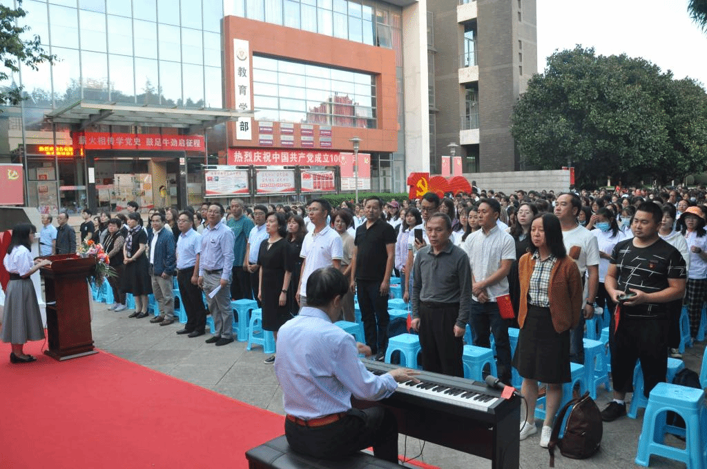 在教育学部副主任王文军老师钢琴伴奏下,典礼在全场合唱《没有共产党就没有新中国》的歌声中落下帷幕。