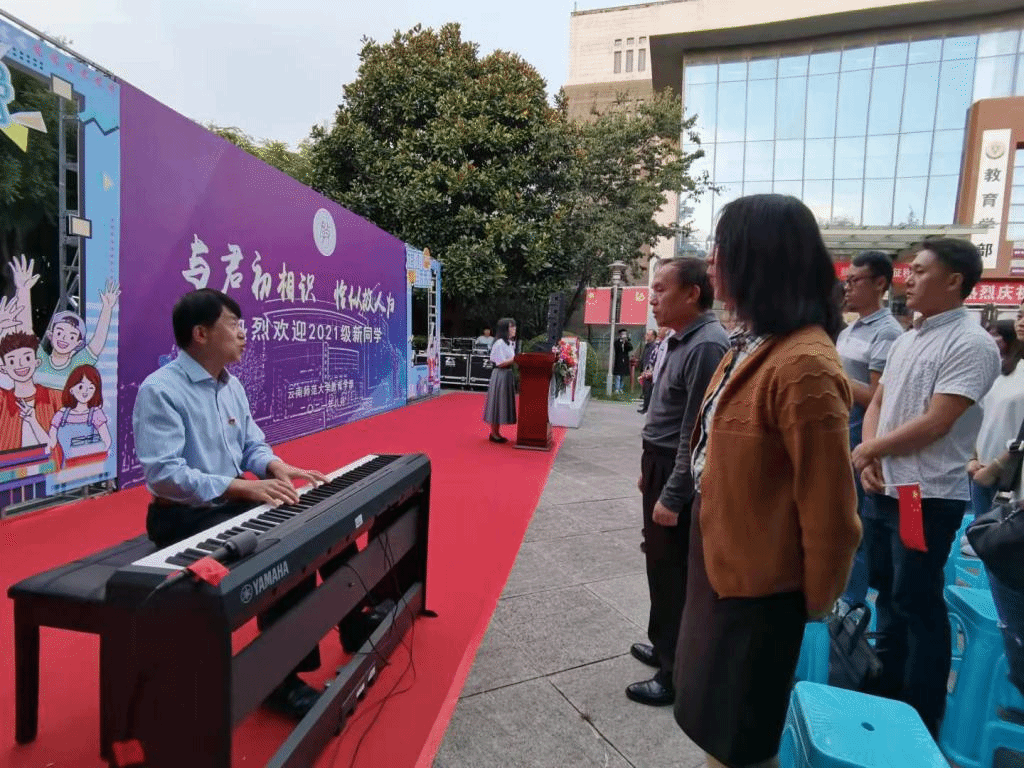 聚贤金秋,携梦飞翔。9月28日下午,教育学部2021级新生开学典礼在呈贡主校区明德4号楼小广场举行。学部党政领导班子成员、博士生导师、学位点点长、中层干部、各系系主任、专业负责人、新生班主任、辅导员、教师代表以及全体2021级新生、云南省基层人才对口培养计划学员参加了开学典礼。典礼由教育学部党委副书记朱静虹主持。