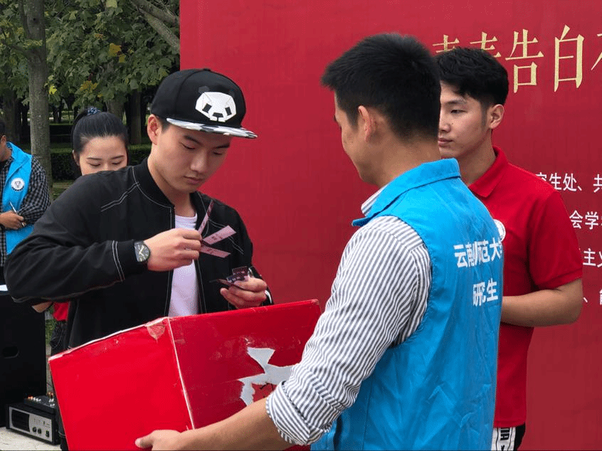 完成七个打卡点的小项目集齐7枚印章后,同学们来到打卡墙上签名留念,并进行抽奖。