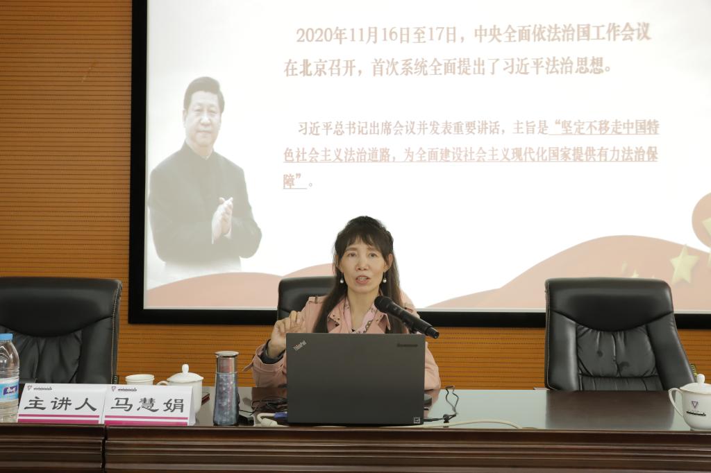 马慧娟教授详细解读了中央全面依法治国工作会议精神,并结合新冠疫情防控以及中国现代化治理能力和治理水平不断向世界传递两个角度,深入阐述了“是什么是法治”“习近平法治思想的内涵及思想的形成”“习近平法治思想的重要地位和重大意义”“习近平法治思想的基本精神和核心要义”以及“习近平法治思想的理论价值和现实意义”等方面内容。讲座中,马慧娟教授还介绍了云南法治治理的情况,并向同学们提出,要充分理解习近平法治思想的基本精神和深刻内涵,结合专业学习,不断提升法治意识和法治素养,增强学习贯彻习近平法治思想的思想自觉、政治自觉和行动自觉。