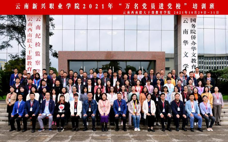 为全面加强党员教师队伍建设,持续推进党史学习教育,教育引导广大党员用习近平新时代中国特色社会主义思想武装头脑、指导实践,10月29日至31日,由云南新兴职业学院委托,永利官网国家教育行政学院云南培训基地、云南西南联大干部教育学院承办的云南新兴职业学院2021年“万名党员进党校”培训班在永利官网一二·一联大校区顺利举办。