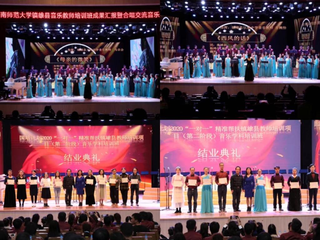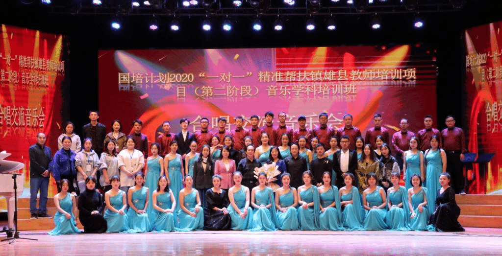 音乐班的结业仪式暨成果汇报合唱交流音乐会在昆明市五华区青少年宫举行。戴星海副教授在结业仪式上表示,希望通过此次培训,各位音乐教师能成为镇雄中小学教育的一粒音乐种子,在自己的校园里组建学生合唱团,达成“校校有合唱,班班有歌声”的培训目标。唐瑛院长希望全体参训教师能够唱出对美好生活的向往、对教育事业的情怀、对音乐教育的希望,让歌声成为学校和班级靓丽的风景线。
