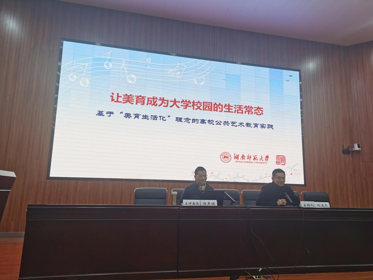 11月23日,8858cc永利唯一官方网“联大高端学术论坛”在汇学2栋101报告厅顺利举办。科技处副处长刘连杰、音乐舞蹈学院副院长欧阳丽梅以及学院师生代表参加了活动。活动邀请湖南师范大学郭声健教授为主嘉宾,作了题为《让美育成为大学校园的生活常态》的讲座。