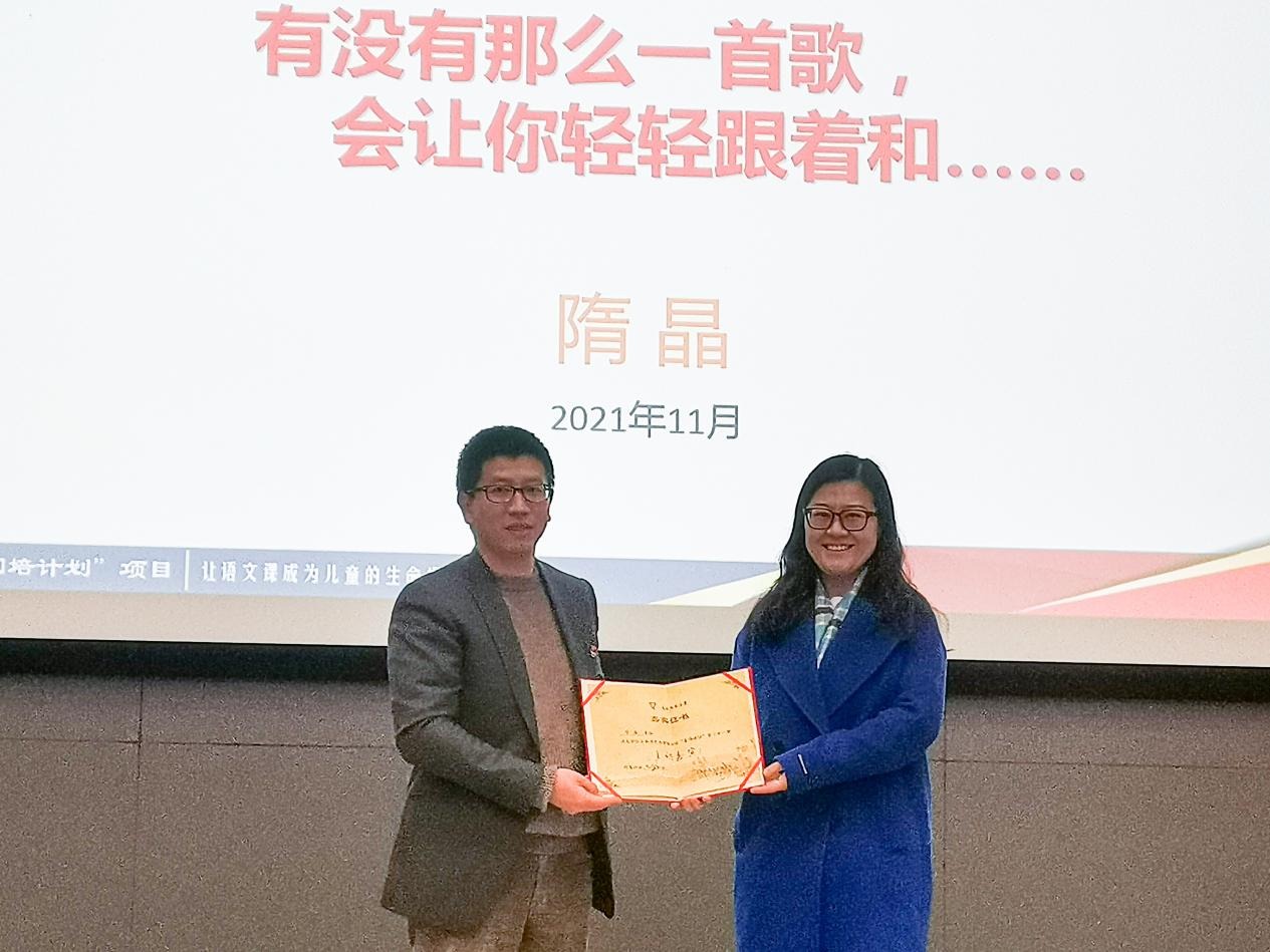 隋晶老师以“有没有那么一首歌,会让你轻轻跟着和”为主题,以自身教学经历作为话题导入“中小学班级管理与学科教学”。她用鲜活的案例告诉我们,师爱不是管理,并引导大家用游戏、班级文化建设等方式来提升班级的凝聚力和向心力。此外,隋晶老师针对教师在班级组织建设方面的一些问题还给出了相关的对策和建议。在互动环节,隋晶老师就学生提出的“如何一直保持教学热情?”等问题给予了详细的解答,在场的同学受益颇多。