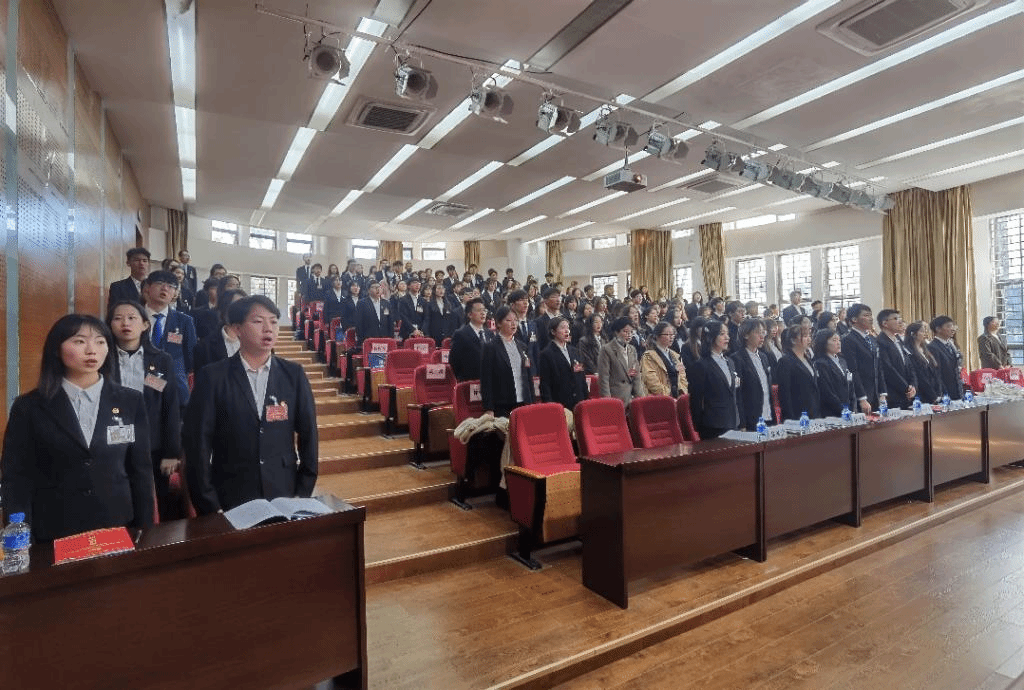 大会在庄严的国歌声中拉开序幕。工作人员宣读了来自马克思主义学院团委,历史与行政学院团委,云南华文学院、国际汉语教育学院团委,法学与社会学学院团委的贺信。