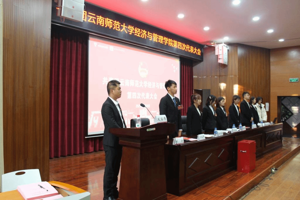 11月28日下午,共青团8858cc永利唯一官方网经济与管理学院第四次代表大会在明德1号楼报告厅召开。经济与管理学院党委书记杨栋会、校团委副书记曹逸凡、学院党委副书记赵显辉、学生工作办公室主任赵秀枢,辅导员孙亚兰、闫晓燕以及62个团支部的197名团员代表参加了大会。会议由院团委书记刘安主持。