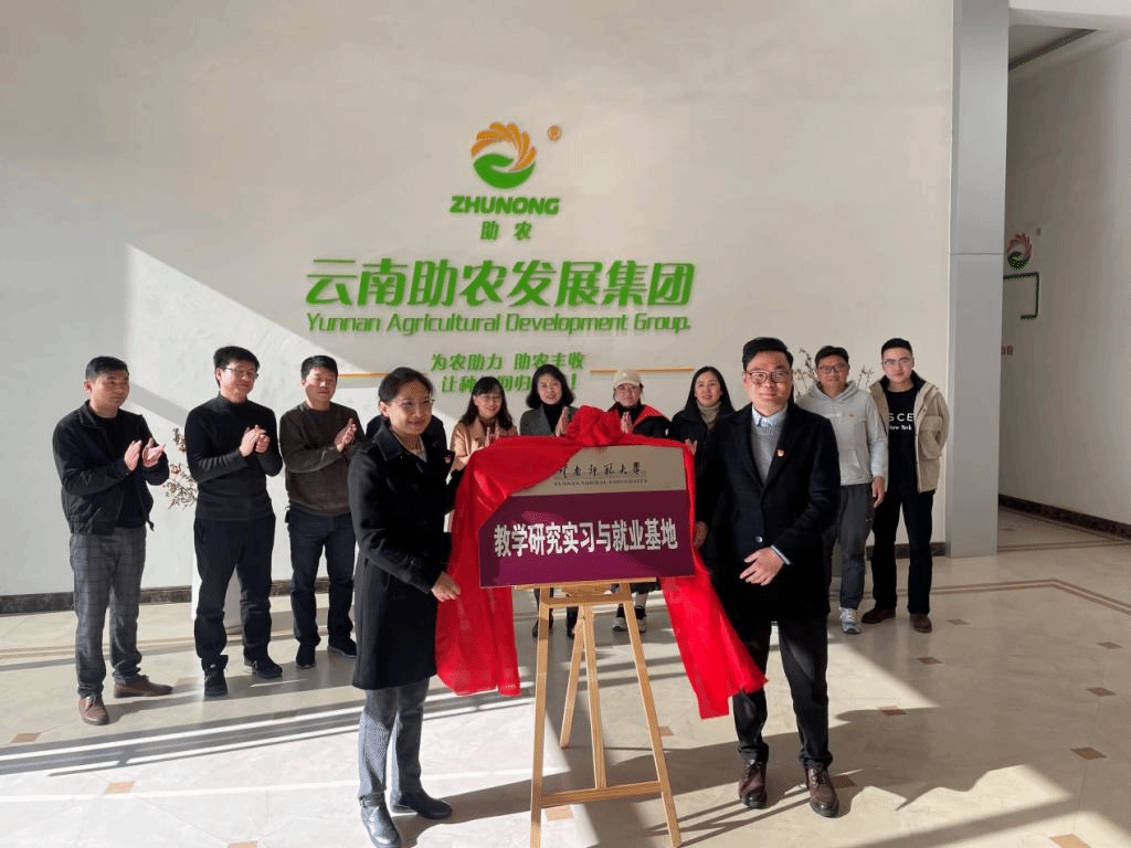 最后,校友工作办与云南福贵磷化工有限公司签订合作协议,并举行“教学研究实习与就业基地”授牌仪式并合影留念。