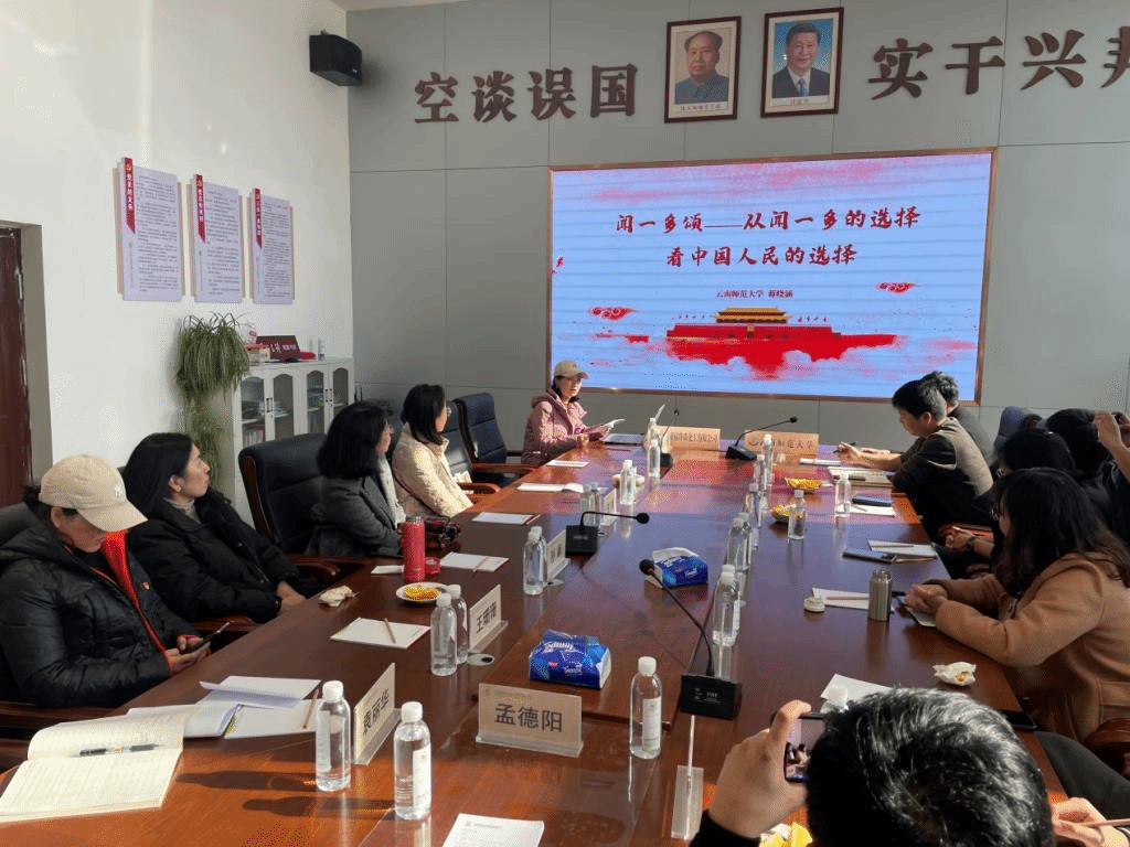 接着,对外合作交流处党支部宣传委员兼纪检委员蒋晓涵同志为全体党员上了一堂题为《从闻一多的选择看中国人民的选择》的党课。蒋晓涵同志讲述了闻一多先生在青年时期和中年时期的道路选择,到最后用鲜血和生命诠释了民主党派的历史选择:接受中国共产党的领导,走人民革命的道路,拥护成立人民民主的新中国。这是闻一多的选择,也是历史和人民的选择。