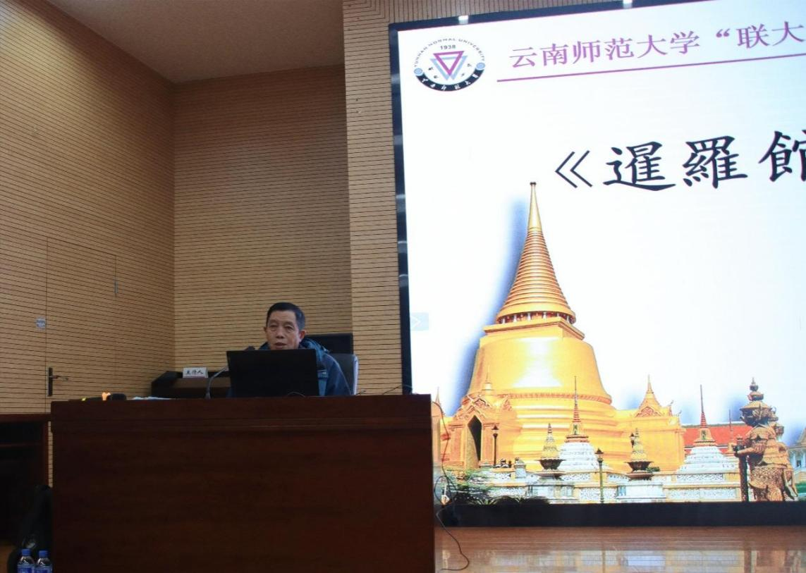 12月2日下午,8858cc永利唯一官方网主办、云南华文学院承办的“联大高端学术论坛”在同析2栋报告厅举行。云南民族大学二级教授、省级教学名师、东南亚南亚语言文化学院原院长杨光远为师生们作了题为“《暹罗馆译语》语音研究”的学术讲座。讲座由华文学院泰语专业负责人何冬梅教授主持,全体泰语教师、科研骨干代表等专家学者以及泰语专业约150余学生参加了此次学术活动。