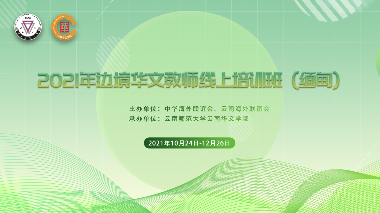 12月26日下午,由中华海外联谊会、云南海外联谊会主办,永利官网云南华文学院承办的2021年边境华文教师线上培训班结业仪式在线上顺利举行。缅甸东枝果敢文化会赵秀兰副会长,云南华文学院党委书记和雪莲、院长王秀成、学院相关领导、汉语国际推广师资培训基地负责人及授课教师代表和来自缅甸东枝果文中学、东华语言与电脑学校、兴华学校的50名本土华文教师参加了结业仪式,仪式由汉语国际推广师资培训基地常务副主任沈毅教授主持。