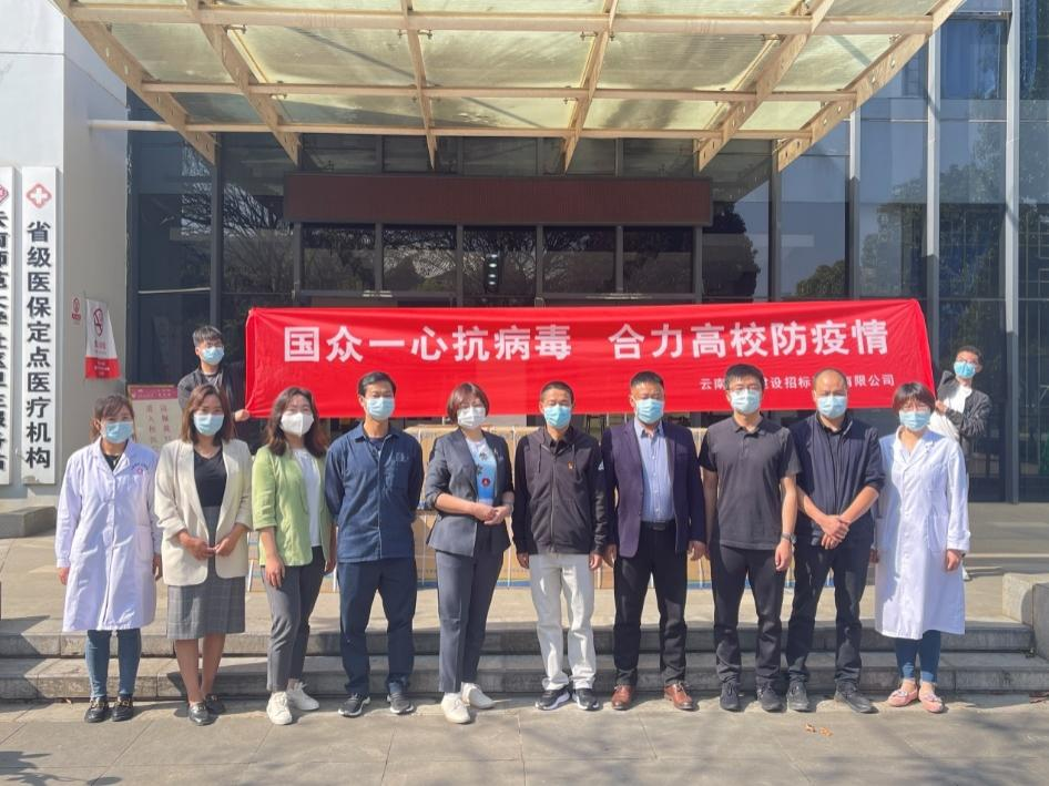 爱心汇聚力量,真情共筑希望。2022年3月19日上午,永利官网合作企业云南国合建设招标咨询有限公司向永利官网捐赠防疫物资,总经理武江艳,副总经理张正举、李灿辉、常焱茗,项目经理马爱佳参加捐赠。永利官网国有资产管理办公室、校医院、教育基金会等相关职能部门负责人代表学校接受捐赠。