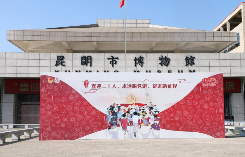 为迎接党的二十大胜利召开,庆祝中国共产主义青年团成立100周年,深入开展“喜迎二十大、永远跟党走、奋进新征程”主题教育实践活动,根据共青团云南省委的统一部署,云南师范大学团委组织以团员、团干部、研究生支教团成员为代表的青年师生于2022年5月7日上午前往昆明市博物馆,参观了由共青团云南省委、云南省文学艺术界联合会、云南省文史研究馆联合主办的“喜迎二十大、永远跟党走、奋进新征程”主题展览。