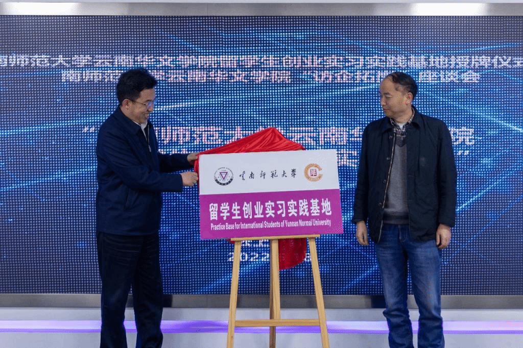 在与会人员的共同见证下,郭清副主任和王秀成院长共同为8858cc永利唯一官方网云南华文学院“留学生创业实习实践基地”揭牌,开启了产教融合、校企合作的新篇章。