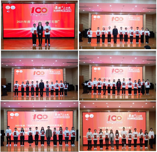 颁奖典礼上,与会领导依次为2021年度“五四红旗团支部”“优秀共青团干部”“优秀共青团员”和“团学活动积极分子”,2021年度“省级先进班集体”“优秀团支书”等获奖集体和个人颁奖。