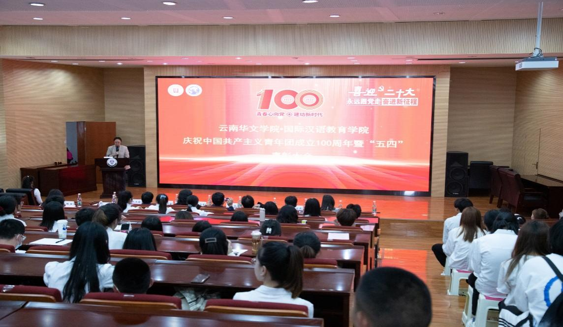 为继承和弘扬五四精神,培育社会主义核心价值观和爱国主义精神,进一步激励广大团员青年坚定理想信念、立志成长成才,云南华文学院、国际汉语教育学院于5月19日举行“庆祝中国共产主义青年团成立100周年暨‘五四’表彰大会”,学院全体党政领导班子成员和获奖代表参加了会议。