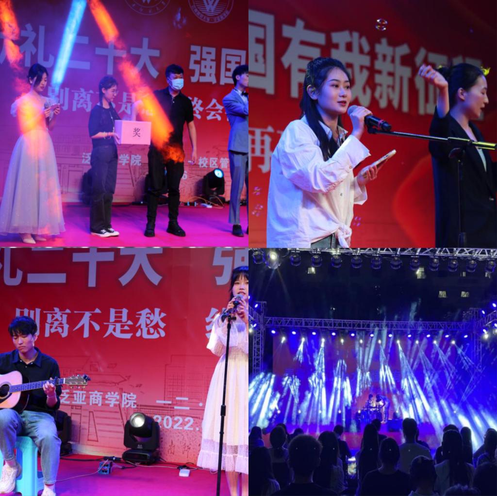 6月1日晚,泛亚商学院联合一二·一校区管委会在一二·一校区举行了“青春献礼二十大 强国有我新征程”文艺晚会。一二·一校区管委会、西南联大干部教育学院、继续教育学院、后勤保障处、保卫处、西南联大博物馆相关负责人以及泛亚商学院领导班子、师生代表参加了本次晚会。