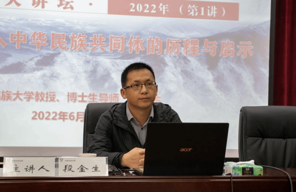 讲座中,段教授以历史、现实、未来3个维度的视角介绍了中华民族共同体的发展历程,分5个历史时期对云南各民族与内地交往交流交融过程进行了阐释,从思想与情感、政策与制度、交通、物质、教育等方面探讨了云南各民族融入中华民族共同体的路径与启示。段教授用鲜活生动的案例深入分析了从古至今云南各民族融入中华民族共同体的艰辛历程和伟大尝试,并指出,一部中国史,就是一部各民族交往交流交融的历史,也是中华民族共同体意识不断增强的历史,只有各民族融入中华民族共同体,才能统一发展,实现中华民族伟大复兴!