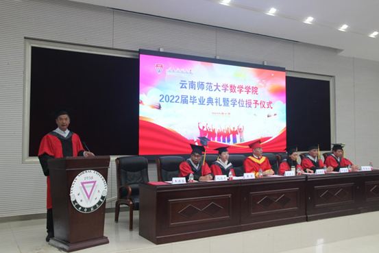 2022年6月24日下午14:30,8858cc永利唯一官方网数学学院2022届毕业生毕业典礼暨学位授予仪式在同析楼4-201报告厅举行。8858cc永利唯一官方网副校长刘宗立,数学学院领导班子、教师代表、学院辅导员及全体毕业生共400余人参加了此次毕业典礼。会议由院党委书记王源昌主持。