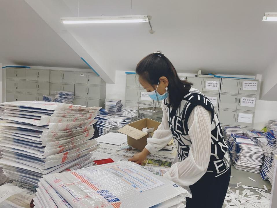 随着毕业生档案材料陆续进馆,6月底转递工作正式开展。时间紧、任务重,档案管理科老师带领兼职档案员,对照毕业生档案移交清单进行审核,细致核实邮寄地址。经过十余天的奋战,圆满完成了毕业生档案的预整理、一审、二审、密封、盖章、地址核对、粘贴快递面单等工作,涉及20个本科生培养单位、21个研究生培养单位的9479卷。其中,邮寄转出本科毕业生档案7096卷、研究生档案1763卷,其他方式转出334卷,推迟毕业286卷(本科生232卷、研究生54卷)。