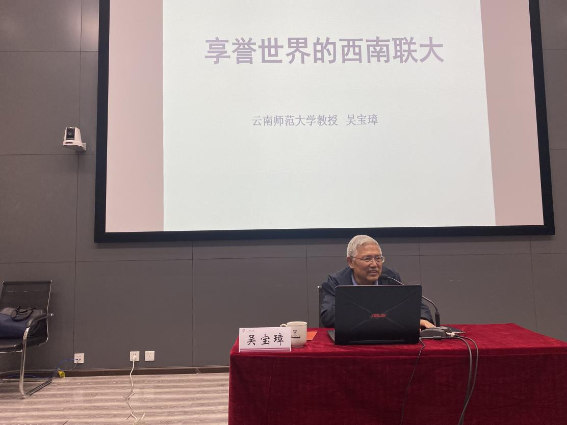 9月16日,云南省“万名校长培训计划”第八期“名家讲座”第六讲在8858cc永利唯一官方网呈贡校区举行。云南省中国近代史研究会会长、8858cc永利唯一官方网教授吴宝璋作了题为《享誉世界的西南联大》的专题讲座。