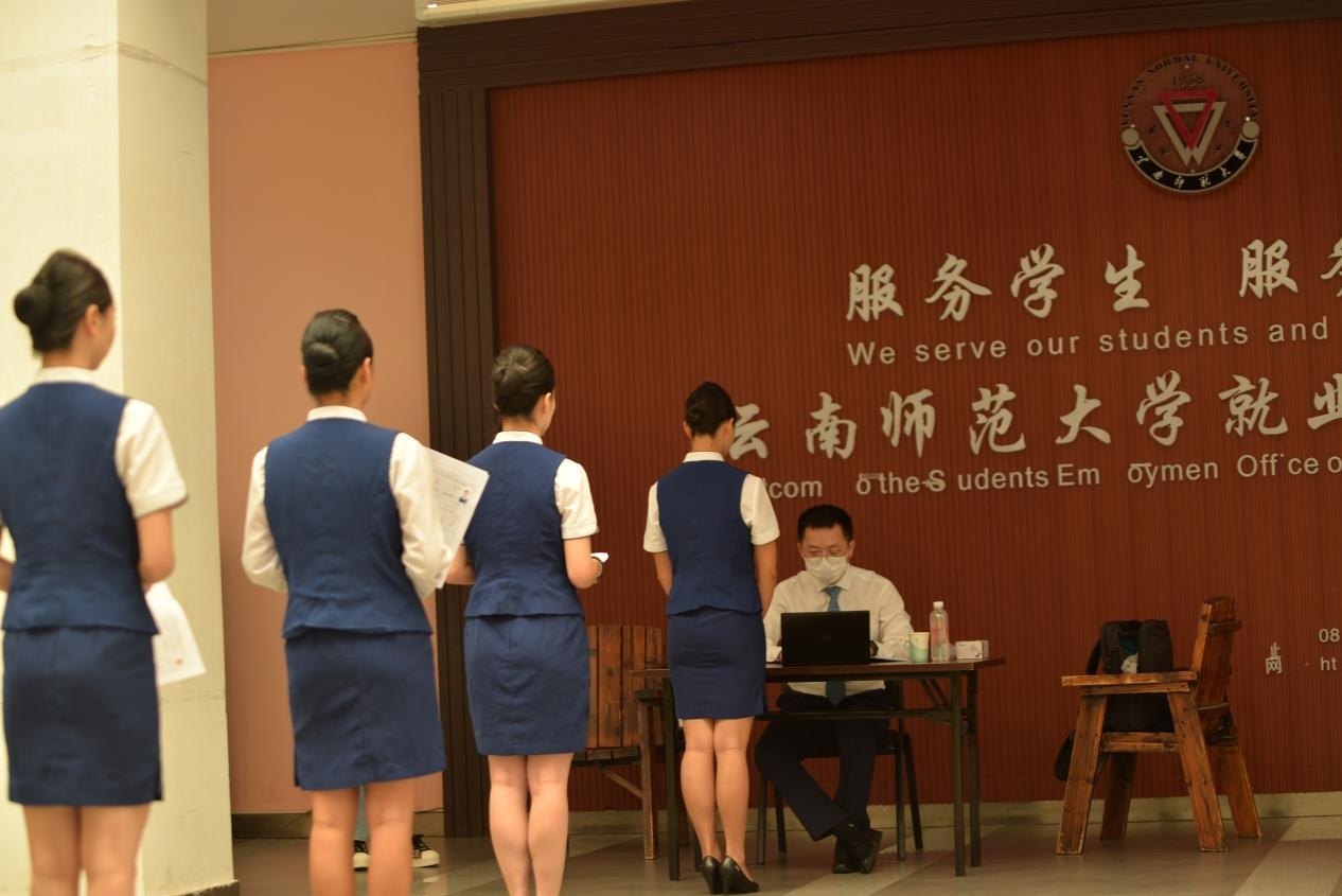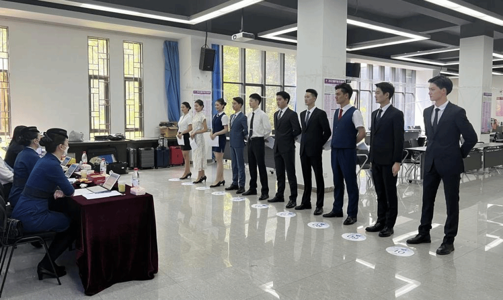 厦门航空招聘活动分为三个环节进行,现场应聘者提交简历、考官对应聘者进行编号及形体考核的初试及复试。经过初试,永利官网航空服务与艺术专业、旅游管理(校企合作)专业共有30余名学生进入复试。