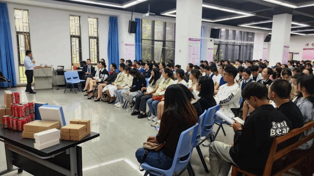 楚雄隆基硅材料有限公司云南区域经理郑晓伟在宣讲过程中与同学互动,通过有奖问答,取得了较好的宣讲效果,目前有190余同学投递了简历,通过用人单位面试,130余名同学达成了就业意向。