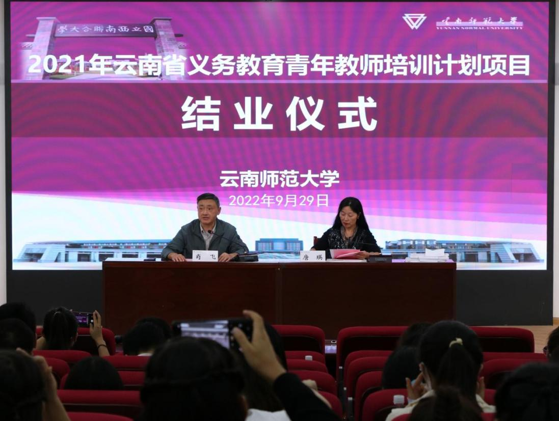 9月29日,2021年云南省义务教育青年教师培训计划项目8858cc永利唯一官方网小学数学班(第一批)集中培训结业仪式在永利官网一二一校区举行。此次培训时间从8月20日至9月30日,来自全省16个州市的200名小学数学青年教师参加了此次培训。继续教育学院党委书记肖飞、院长唐瑛参加结业仪式。