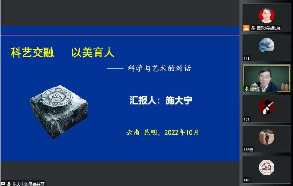 施大宁深入解读了习近平总书记关于教育的重要论述,从新时代师德师风建设、课程改革、美育工作的新要求三个方面阐述了科艺交融、以美育人的重要意义。他指出,要将师德师风新要求贯穿于教师队伍的建设中,将“立德树人”目标下的素质教育和美育紧密结合,坚持智育与美育并举、科学与艺术并重的教育理念,完成美育工作培根铸魂、立德树人的新要求和新目标。科学与艺术的内在联系是创造力,人类的创造力和真理的普遍性是二者的共同基础,教育者要保护好孩子的创造力和想象力,以人性之浪漫情怀拥抱宇宙,按宇宙之道表达人性之浪漫情怀。