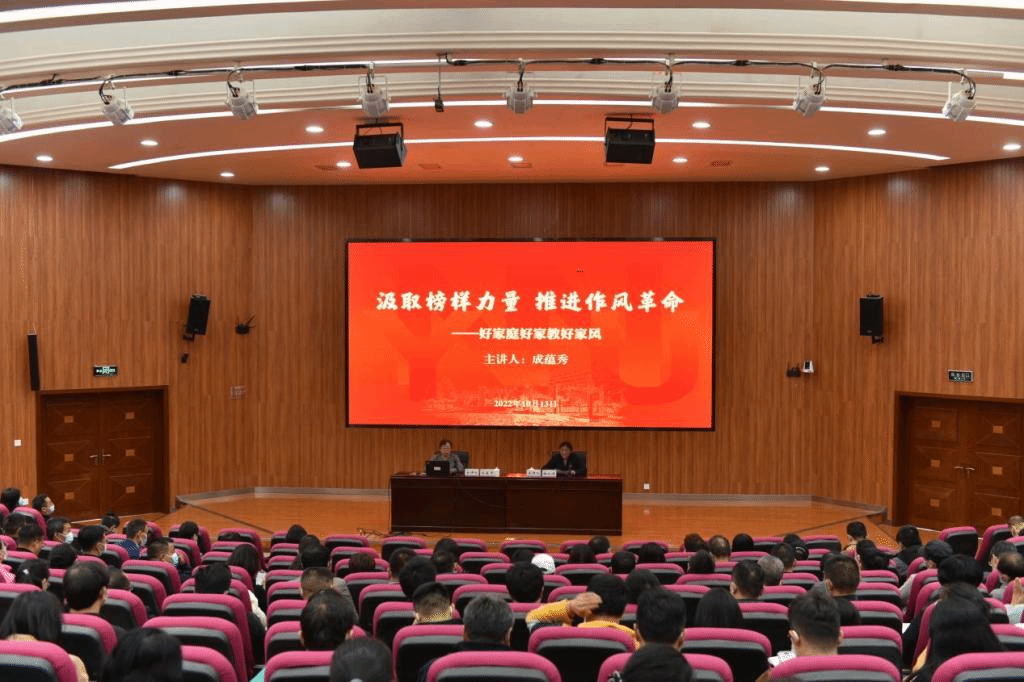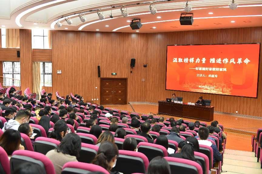 为贯彻落实学校党委《关于推进作风革命加强效能建设实施意见》的要求,深入推进职能部门作风建设,弘扬中华民族传统家庭美德,将家庭美德与校园文化建设相结合,以树清廉家风活动推进“清廉学校”“清廉师大”建设,以实际行动迎接党的二十大胜利召开,10月13日下午,职能部门党委、校妇联、纪委纪检处、校工会在呈贡校区汇学2栋101报告厅联合开展“汲取榜样力量 推进作风革命”——好家庭好家教好家风分享会,职能部门全体教职工参加。
