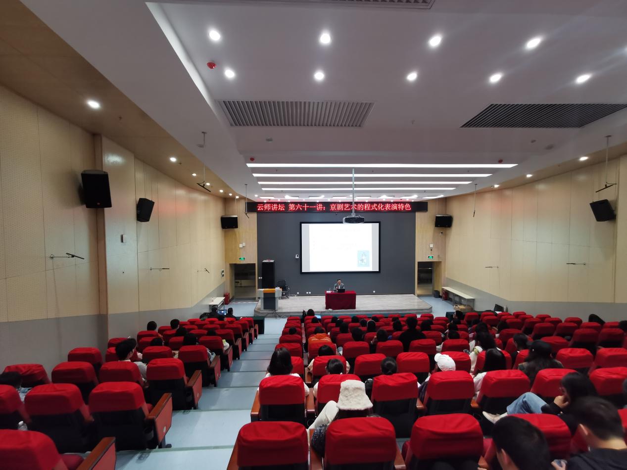 10月21日晚,云师讲坛第六十一讲在永利官网呈贡主校区教师教育国家实验教学示范中心214报告厅如期举行。云南省京剧院副院长朱福为师生们带来了“京剧艺术的程式化表演特色”主题讲座,讲座由公共艺术教育中心副主任何纾主持,线上线下约百余名师生聆听讲座。