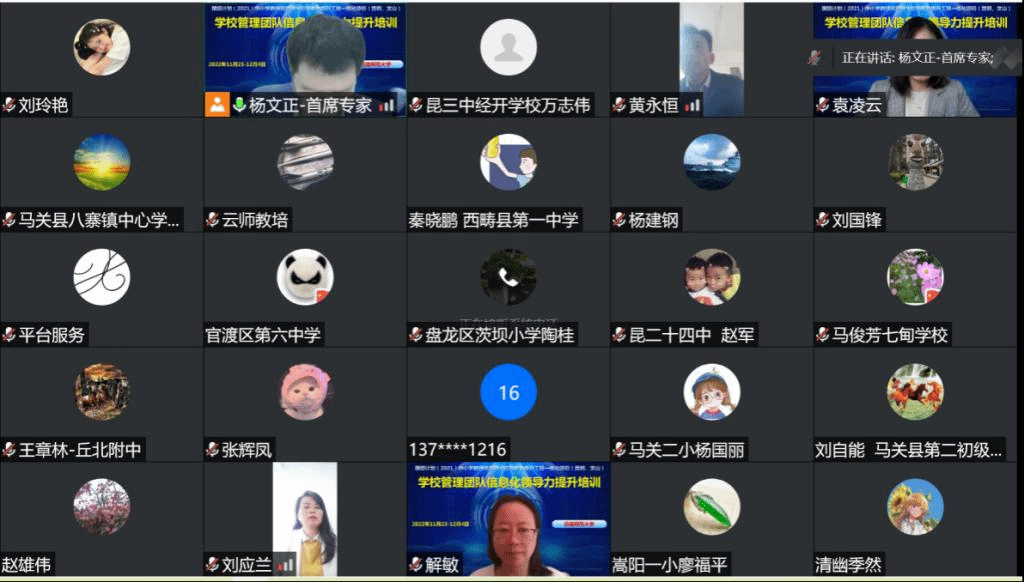 11月23日至12月3日,根据教育部《关于实施全国中小学教师信息技术应用能力提升工程2.0的意见》及云南省教育厅《关于加快组织实施2020年中小学幼儿园“国培计划”项目培训任务的通知》要求,永利官网开展中小学教师信息技术应用能力提升工程——学校管理团队信息化领导力提升培训。来自昆明、文山两地中小学信息技术应用示范校校长、副校长、骨干教师、教研员及管理人员共计351人参加。