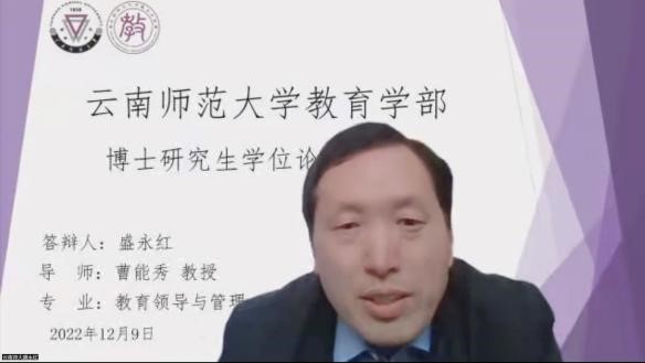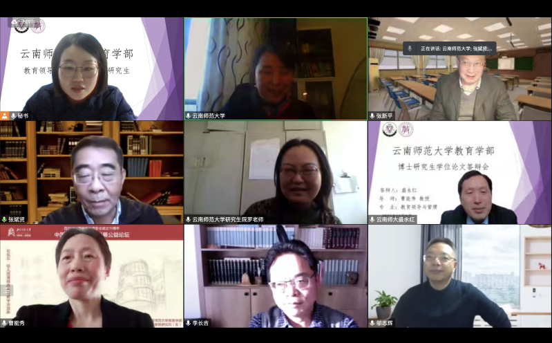12月9日下午,教育学部举办了2018级教育领导与管理专业博士首位研究生学位论文答辩会。此次答辩申请人为2018级教育领导与管理专业博士研究生盛永红,指导教师为曹能秀教授。答辩会采取在线方式形式,线上旁听的教师和研究生人数共有110多人。答辩由答辩委员会主席、北京师范大学教育学部博士生导师、长江学者张斌贤教授主持。