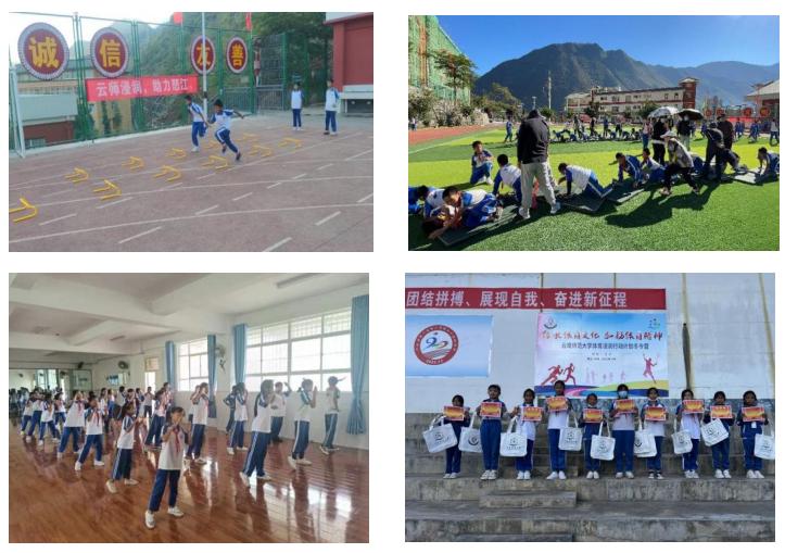2022年9-12月,永利官网承办的教育部“体育浸润行动计划”走进怒江州泸水市第一完全小学,开展为期3个月的“体育浸润行动计划”支教工作。本次支教工作根据泸水第一完全小学的实际情况,从体育学院选派5名优秀本科生,由相关专业老师带队组成“体育浸润行动计划”支教团,对泸水第一完全小学有关小学体育与健康课程建设、校园体育文化建设、体育课外活动实践、大课间等内容进行精准帮扶。