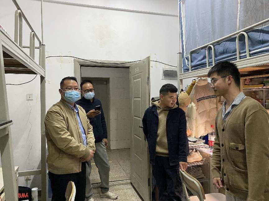 杨栋会一行先后到西区10栋男生公寓和西区7栋女生公寓走访,与学生们亲切交谈,认真倾听同学们心声。在深入了解同学们的思想动态、心理状况、学习生活情况后,杨栋会嘱咐同学们要提高防范意识,做好健康检测,做好季节性传染病的防控,尽量减少聚集性活动。鼓励同学们珍惜在校学习时光,夯实专业基础,提高理论水平,做好未来职业规划,立大志、明大德、成大才、担大任。