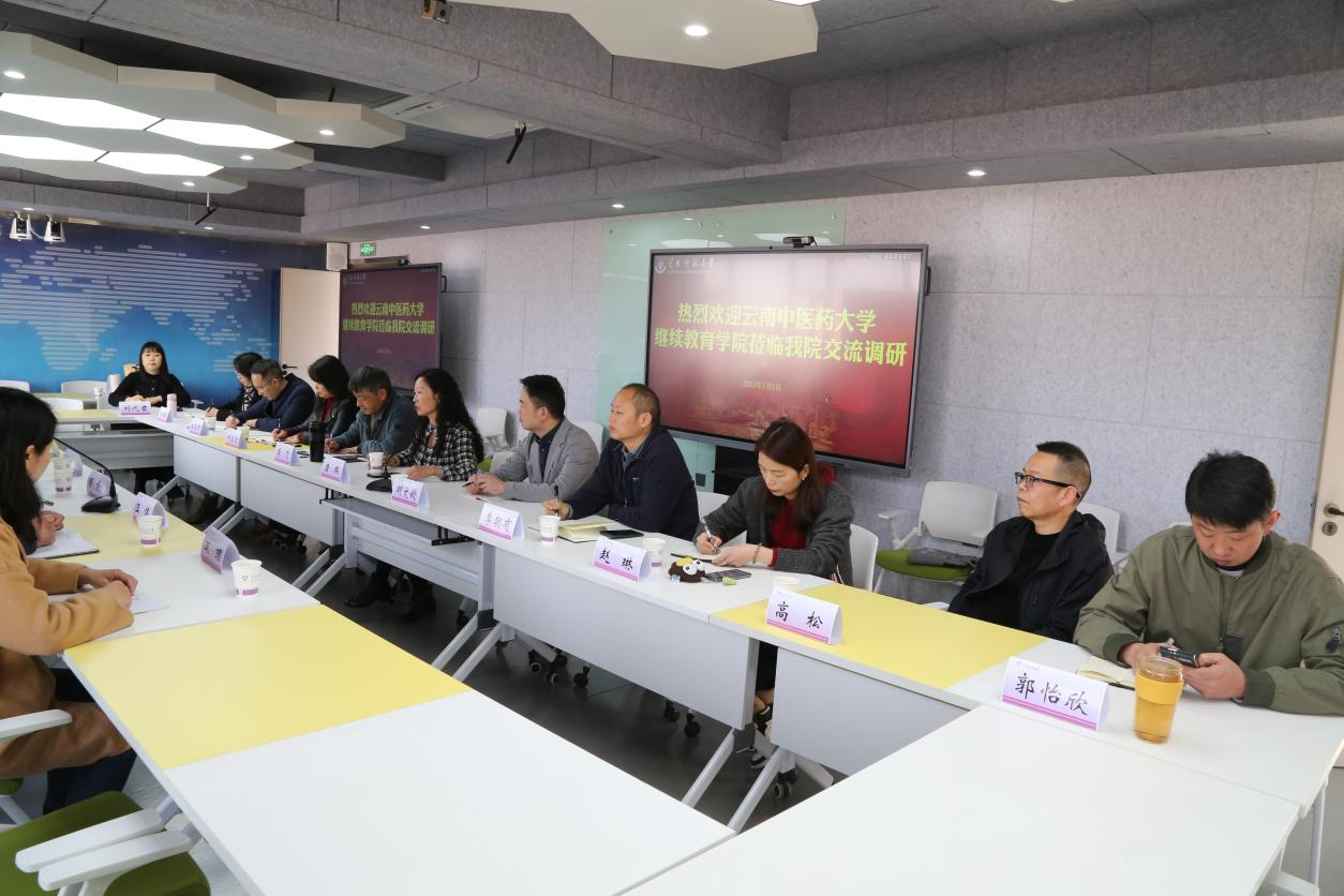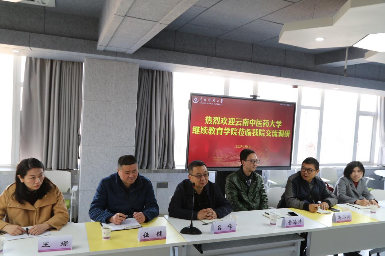 3月6日,云南中医药大学继续教育学院院长吕峰一行6人到永利官网继续教育学院调研交流。继续教育学院党委书记肖飞、院长唐瑛及相关人员参加交流。