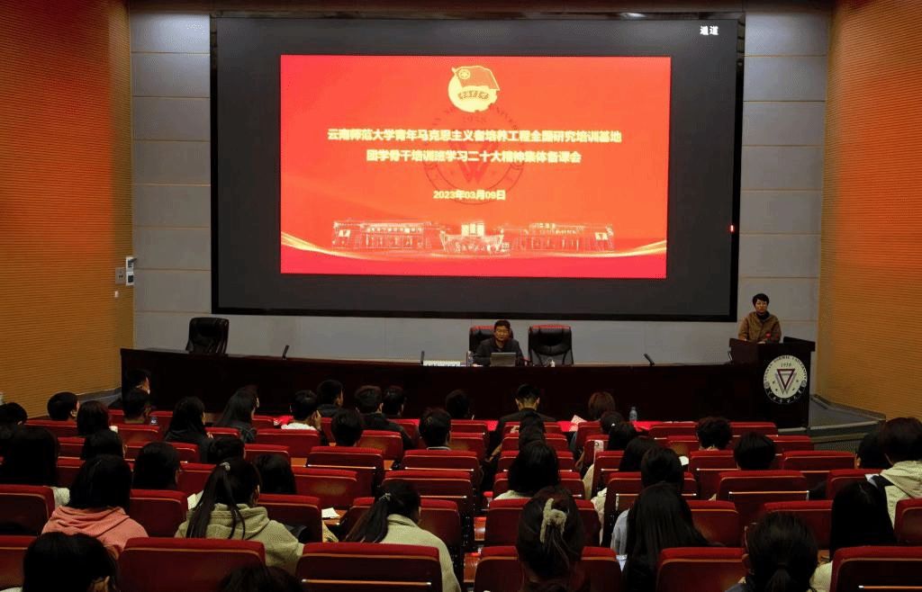 为深入学习宣传贯彻党的二十大精神,引导全校广大青年师生为全面建设社会主义现代化国家、全面推进中华民族伟大复兴贡献青春智慧和力量,3月9日晚,由校团委主办的8858cc永利唯一官方网学习宣传贯彻党的二十大精神青年宣讲团集体备课会在呈贡主校区西边中心报告厅举行。永利官网马克思主义学院院长刘化军为青年宣讲团成员授课,永利官网学习宣传贯彻党的二十大精神青年宣讲团由青年讲师团成员、各级团干部、青马工程学员、青马研习社成员等组成,校团委书记郑伟俊主持了备课会。