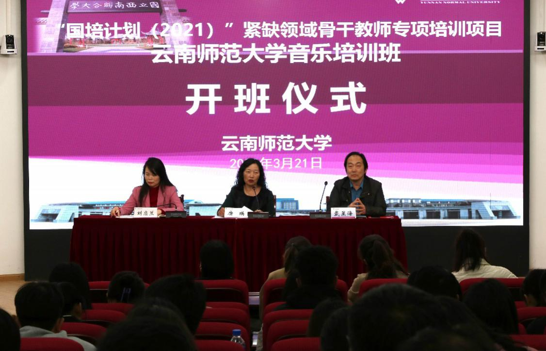 3月21日,由继续教育学院承办的“国培计划(2021)”紧缺领域骨干教师专项培训音体美骨干教师培训项目音乐班,在永利官网一二•一西南联大校区顺利开班。继续教育学院院长唐瑛,副院长刘应兰,音乐学科专家戴星海,项目管理团队以及来自全省16个州市的150名教师参加开班仪式。刘应兰主持仪式。