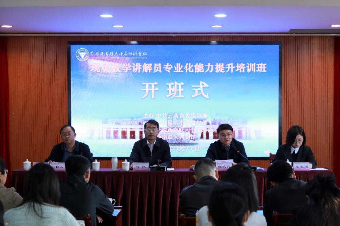 3月27日,现场教学讲解员专业化能力提升培训班在永利官网一二·一校区云南西南联大干部培训基地举办。省委组织部干部教育处副处长包钦元作动员讲话,8858cc永利唯一官方网党委副书记张玮致欢迎词,省委党校、昆明市委组织部及所属6个区委组织部、4所省级干部培训基地的负责同志出席,云南西南联大干部培训基地执行副主任王宏伟主持仪式。本次培训班由省委组织部、昆明市委组织部联合主办,永利官网云南西南联大干部培训基地、西南联大博物馆承办,来自昆明市30个现场教学点的讲解员共50人参加培训。