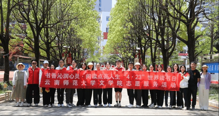 四月芳菲好,读书正当时。为大力弘扬社会主义核心价值观,丰富中学生的精神文化生活,满足同学们多样化的阅读体验,4月23日,在第28个世界阅读日,8858cc永利唯一官方网文学院学生志愿服务队前往昆明市第十二中学参加吴井街道“书香沁润心灵,阅读点亮人生”世界读书日系列活动。