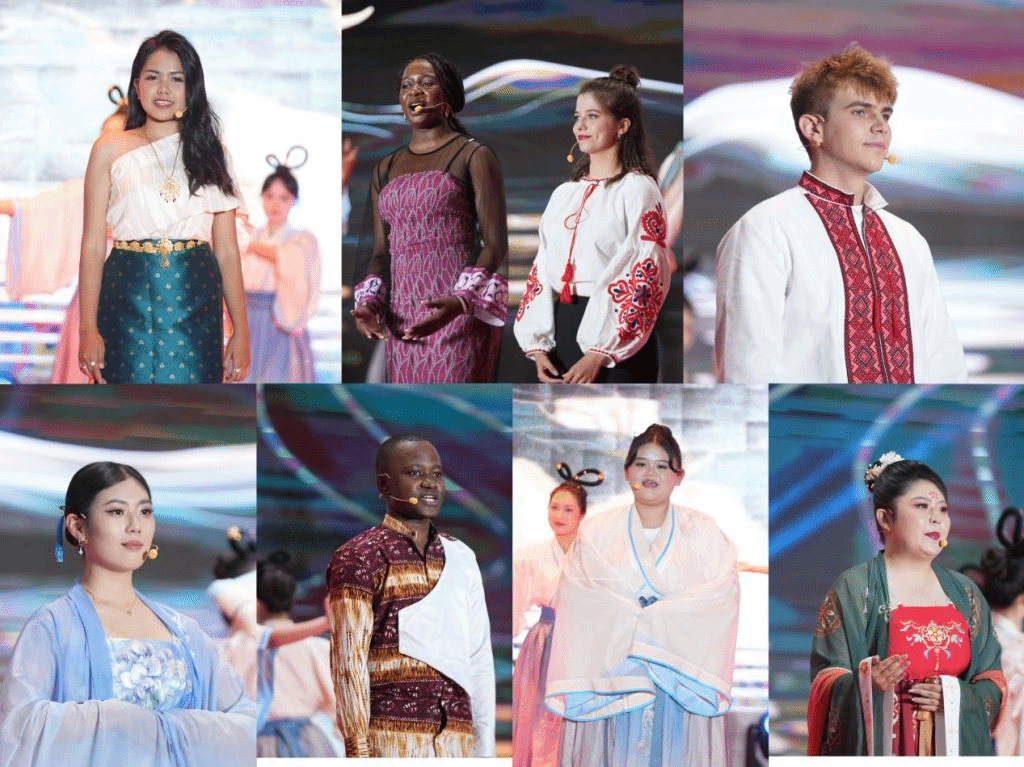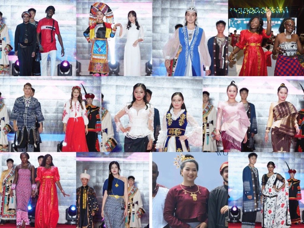 来自刚果(布)、哈萨克斯坦、吉尔吉斯斯坦、柬埔寨、肯尼亚、老挝、马里、缅甸、斯里兰卡、泰国、乌克兰、也门、越南等国家的16名留学生会同交职院的16名中国学生为晚会奉献了一场惊艳的国别与民族服装秀,十多个国家的传统服装与中国少数民族的服装交相辉映、惊艳四座,完美地诠释了活动的主旨。